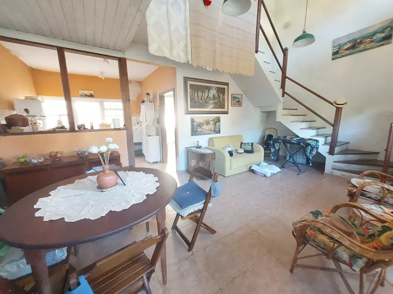 Composta por 3 quartos ( sendo 1 suíte) no andar superior, sala, cozinha, banheiro social, área de serviço e quintal