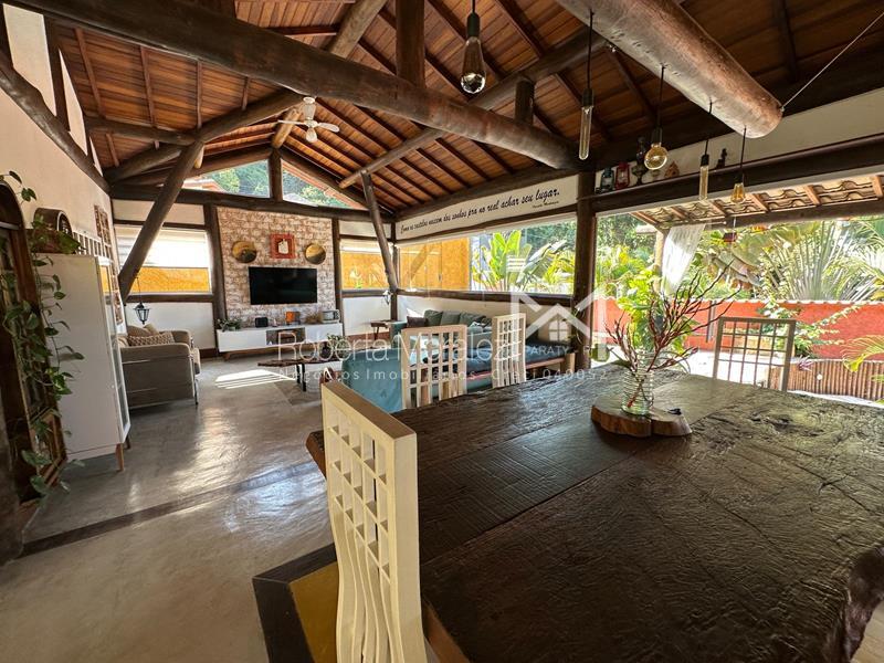 Casa no bairro Parque da Mata para venda em Paraty. Esta encantadora propriedade, em estilo colonial, combina requinte e conforto em uma construção ampla de 200 m², toda em madeira nobre.