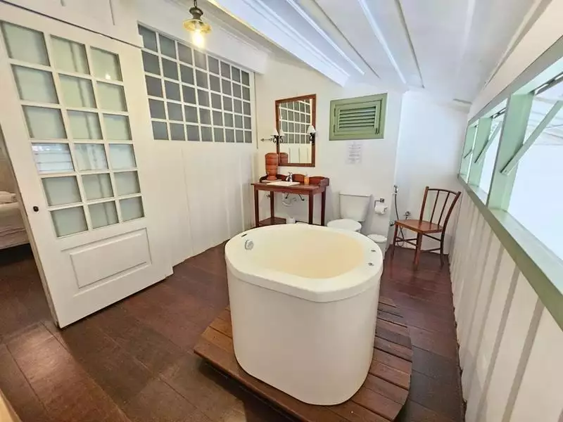 • Suíte principal no segundo piso com ofurô privativo – um refúgio de relaxamento e renovação.