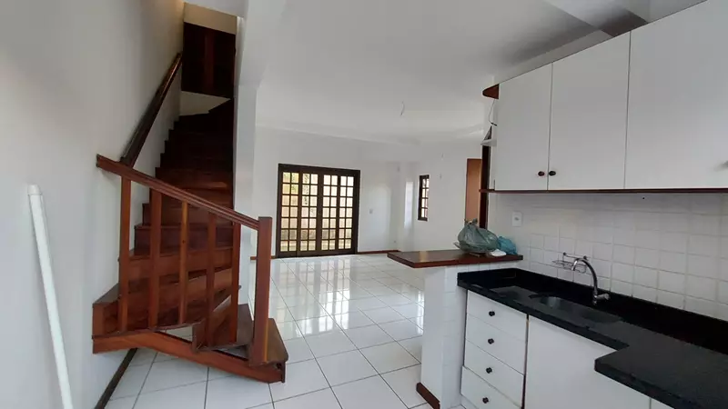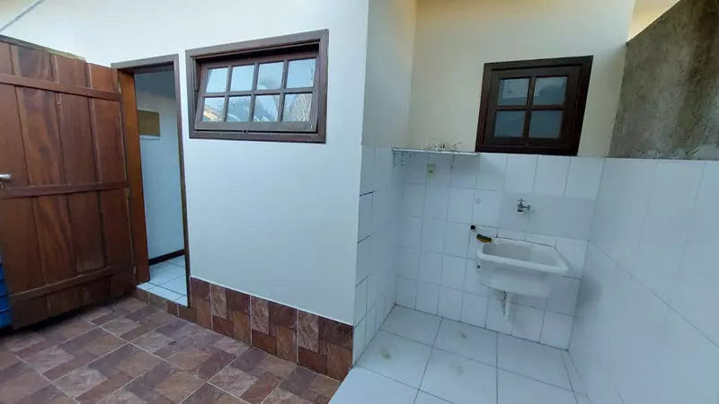 A casa possui no andar superior duas suites (uma com varanda) e no andar térreo, sala, cozinha, lavabo e area de serviço.
