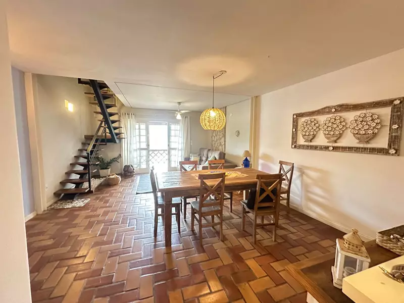 No andar superior, dois quartos espaçosos são dispostos, garantindo privacidade e aconchego. Já no andar inferior, uma sala integrada com varanda é encontrada, perfeita para momentos de relaxamento ou entretenimento. A varanda, já decorada, oferece um ambiente acolhedor para apreciar a vista ou receber visitas. Além disso, um banheiro completo no andar inferior proporciona maior comodidade para moradores e convidados.