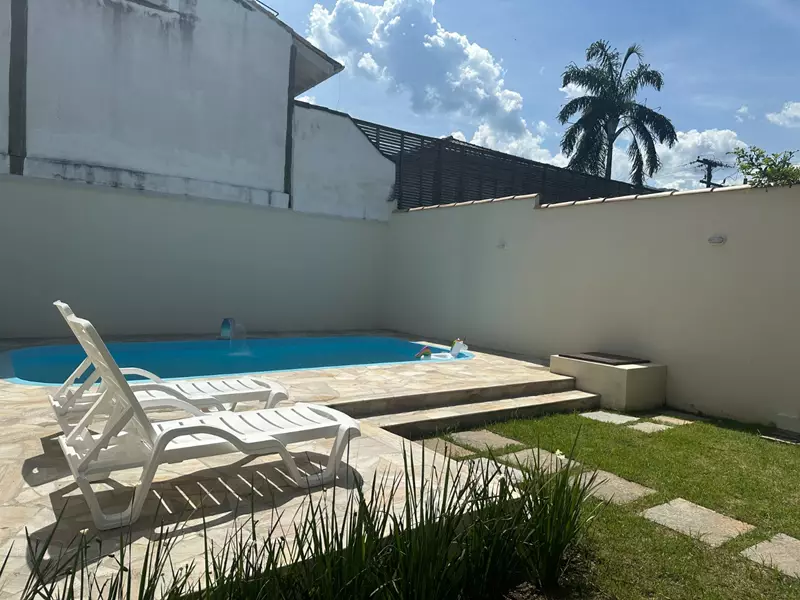 O imóvel conta com 3 quartos (sendo uma suíte), sala com varanda, cozinha americana, área gourmet e amplo quintal com piscina e área gourmet